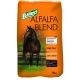 Cette combinaison unique de luzerne, de paille d'avoine vert tendre et de trèfle peut être utilisée pour remplacer une partie du foin ou la totalité du foin, ou simplement en plus de l'aliment composé. Les fibres proviennent de plantes cultivées ensemble dans le champ, puis récoltées alors que la paille d'avoine est encore verte, et donc plus tendre, plus goûteuse et plus digestible, avec en plus une valeur nutritionnelle supérieure à celle de la paille d'avoine jaune récoltée à un stade de maturité plus avancé. Le mélange Alfalfa Blend est cultivé selon les principes de la culture biologique, sans emploi d'engrais ni de produits chimiques et, contrairement à certaines marques connues, il ne contient ni antimoisissures ni conservateurs artificiels.